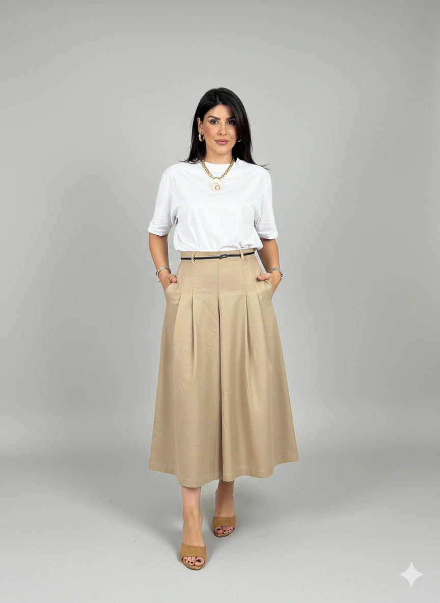 Descubra a elegância e o conforto da Calça em Alfaiataria Pantacour com Cinto Fino de Couro, a escolha perfeita para quem busca estilo e versatilidade no dia a dia.