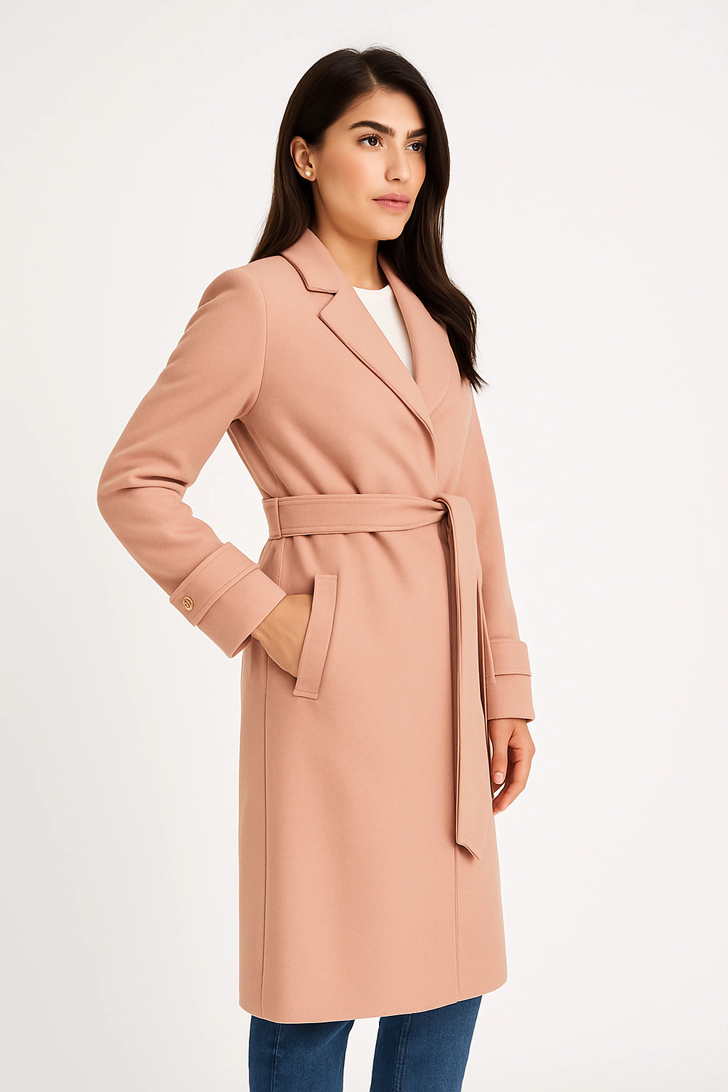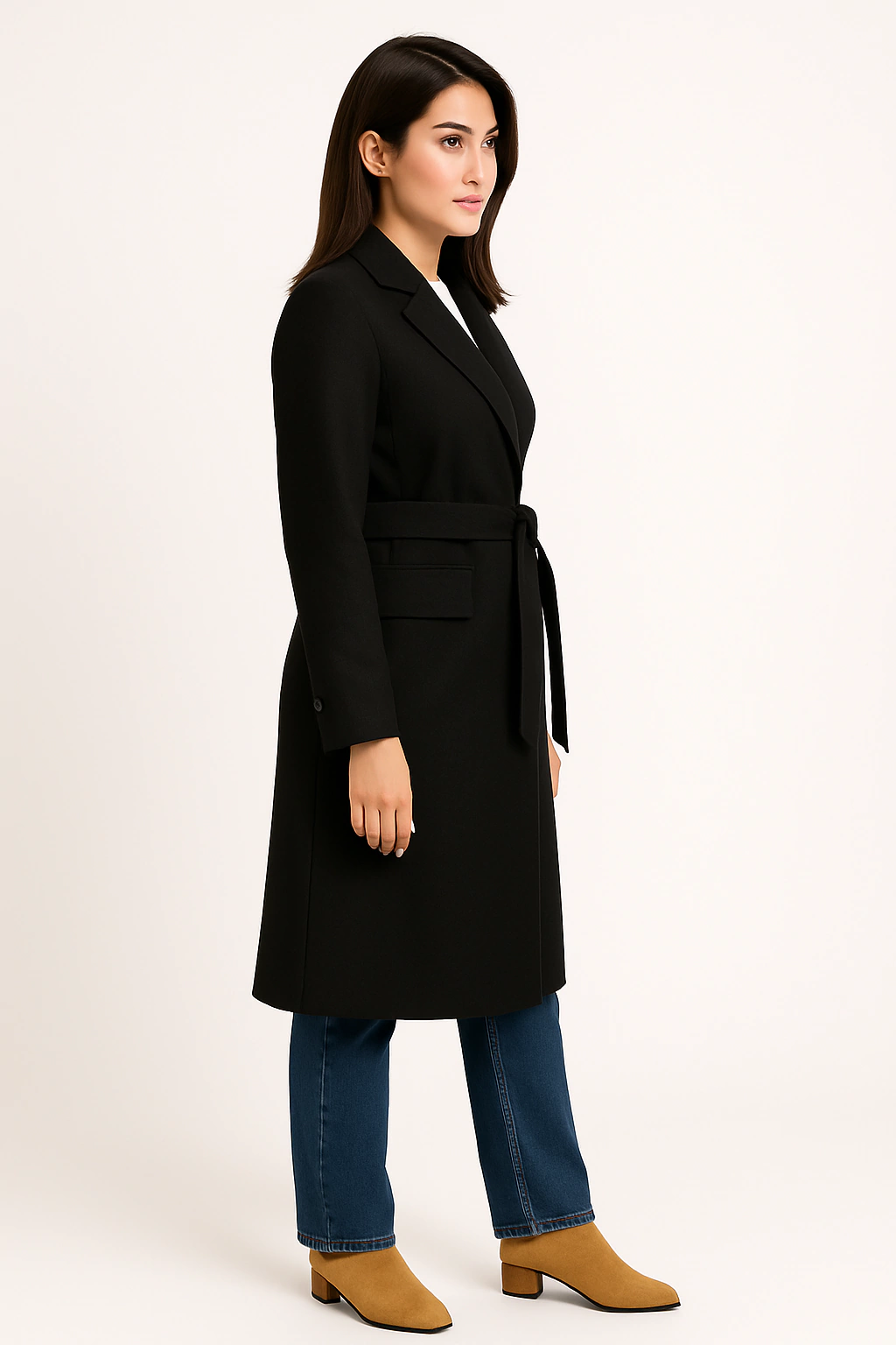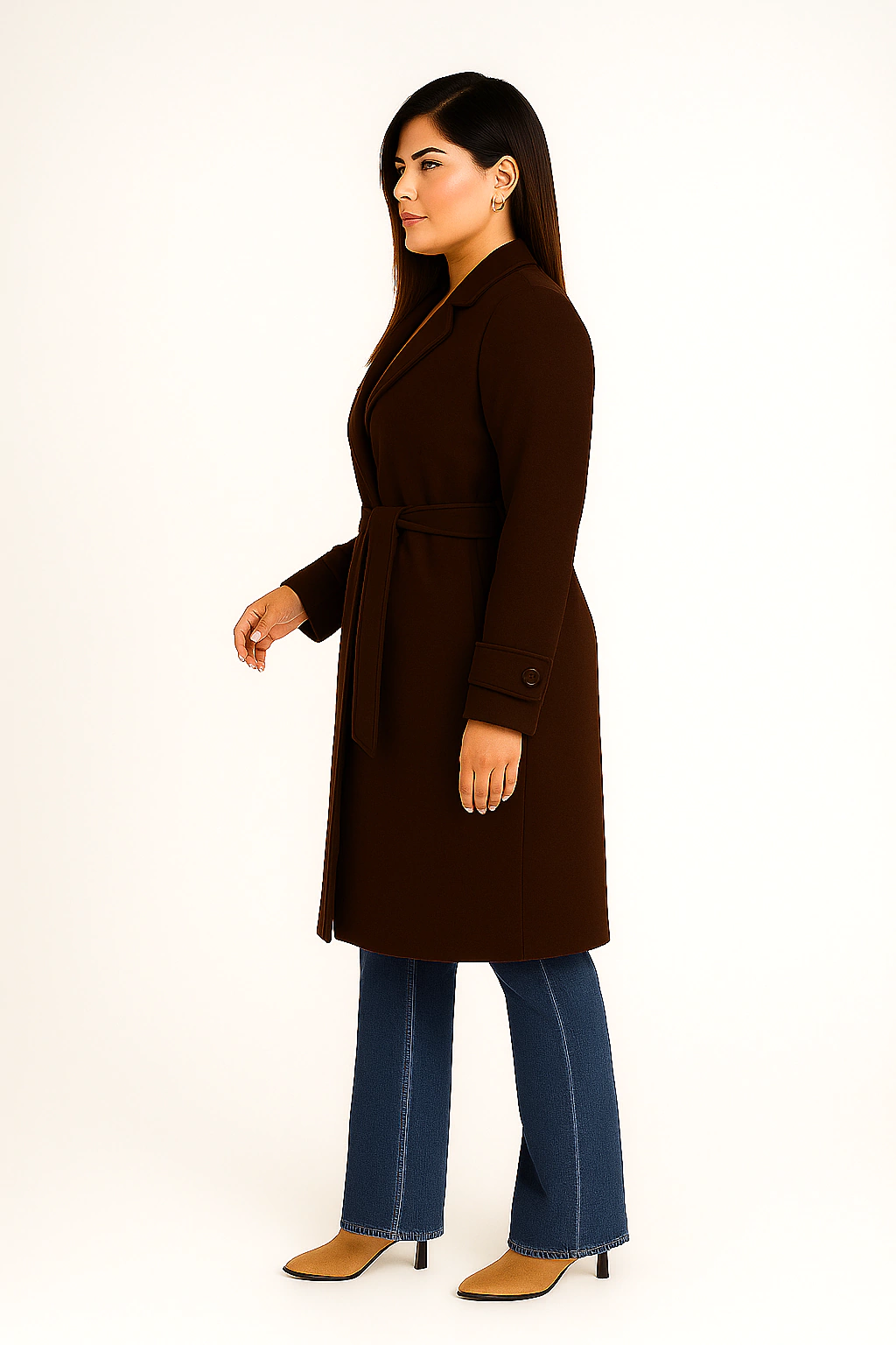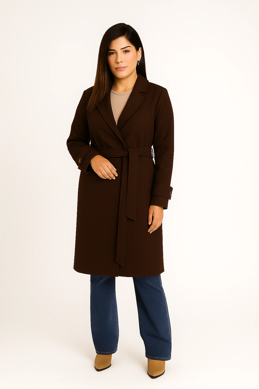 Sobretudo Luxo Lanzinha Com Bolsos Lapela, Martingale e Botão Manga e Cinto: Estilo que Transforma!